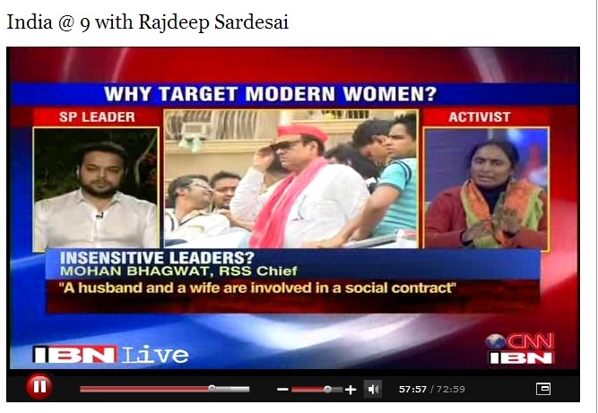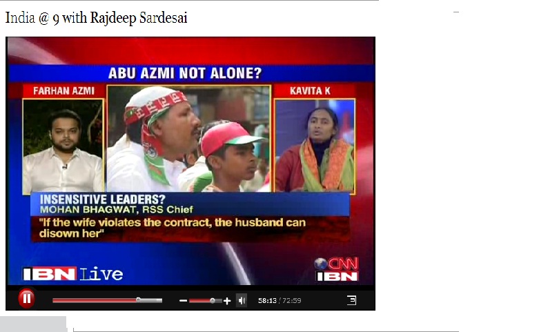 What is revealing is in fact that even a day after Sagarika Ghose ( Associate Editor of CNN-IBN channel ) tweeted her apology that she had misunderstood RSS Sarsanghachalak, Mohan Bhagwat’s comments, her TV channel continued to spread the mis-information. Rajdeep Sardesai (her husband and Editor – In- Chief IBN network ) ran a show with an interview with Abu Azmi’s son,Farhan Azmi on Jan 8th at 9 pm where the scrolls still showed Mohanji Bhagwat as having made the same comments.