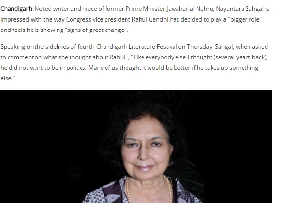 ‘ Rahul Gandhi showing ‘signs of great change ” – Nayantara Sahgal