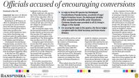 It is also possible that the large presence of Churches, large scale receipts of FCRA funds by evangelical organizations, and the lethargy, inaction and possible complicity of Government officials treating all SCs as Christians, is a clear indication of SCs conversions into Christianity,that have taken place in the state of Andhra Pradesh.