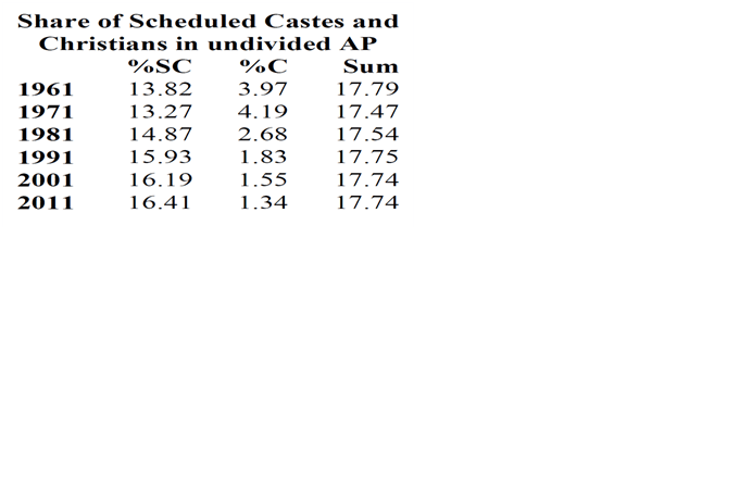 Centre for Policy Studies, New Delhi in their report titled “What happened to the Christians of Andhra Pradesh?” (report copy – Annexure-2) presented the demographic data which reveals blatant misuse of SC reservation benefits by converted Christians. The data shows a sharp decline in those who declared their religion as Christian between 1971 and 2011.