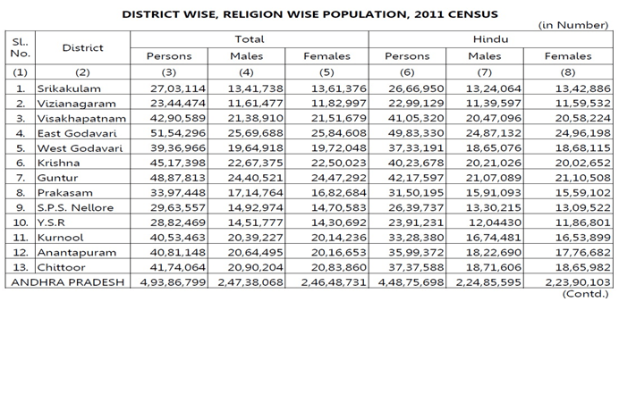 Data for 1 district – Guntur: The number of Christians has reduced from 4.15 lakhs to just 0.89 lakhs in last 40 years while the population of the district went up from 28.44 lakhs to 48.87 lakhs between 1971-2011.
