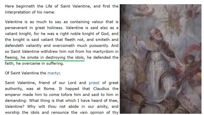 Valentine was a Physician. But he never treated his patients until they converted to Christianity. “Believe that Jesus is God. Destroy your idols. Get baptized and confess your sins. I will then treat your son” – he used to tell his patients. From Passio Valentini (6th cent)