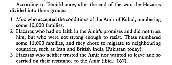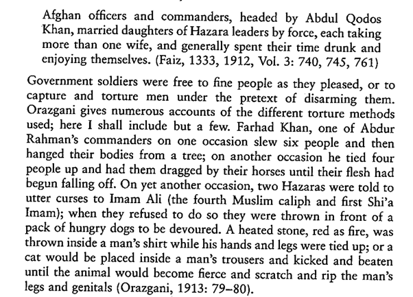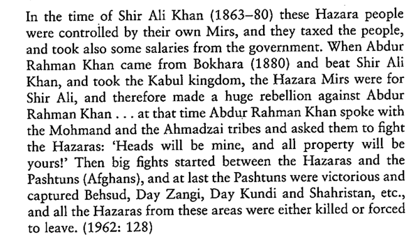 Except for a few Hazara tribes residing in the vicinity of Kabul & Kandahar who paid annual tribute, the Hazaras were independent and NOT under the control of Pashtun (Barakzai) rulers of Afghanistan