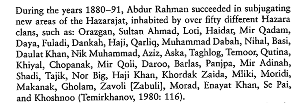 It was Abdur Rahman Khan who first conquered almost all of the Hazara tribes.