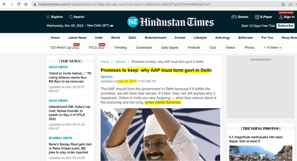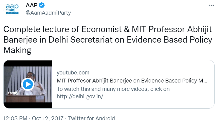 8. AAP was working with Abhijit Banerjee hand to hand in 2017.
