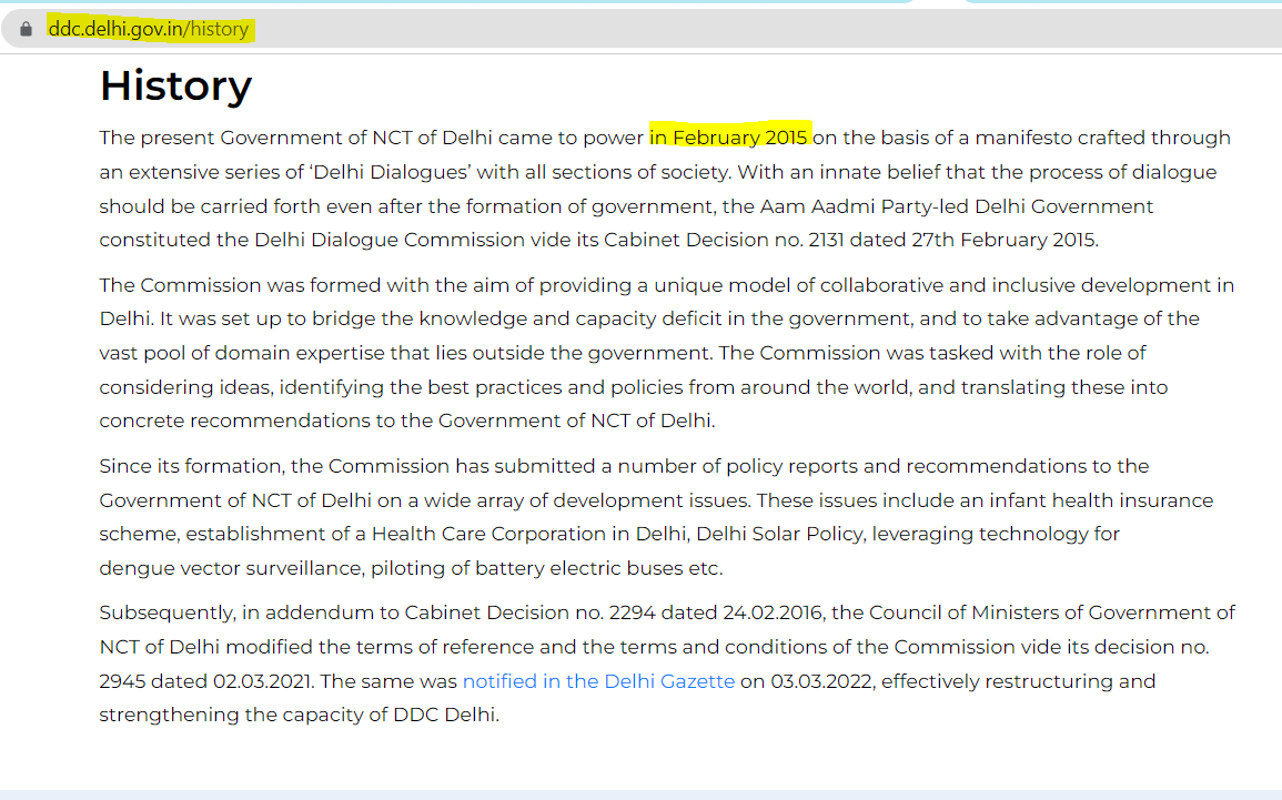 6. In Feb 2015 Kejriwal formed the government and also created a think tank Delhi Dialogue Commission (DDC) to create a policy for Delhi and to run the Delhi government on their advice and plan.