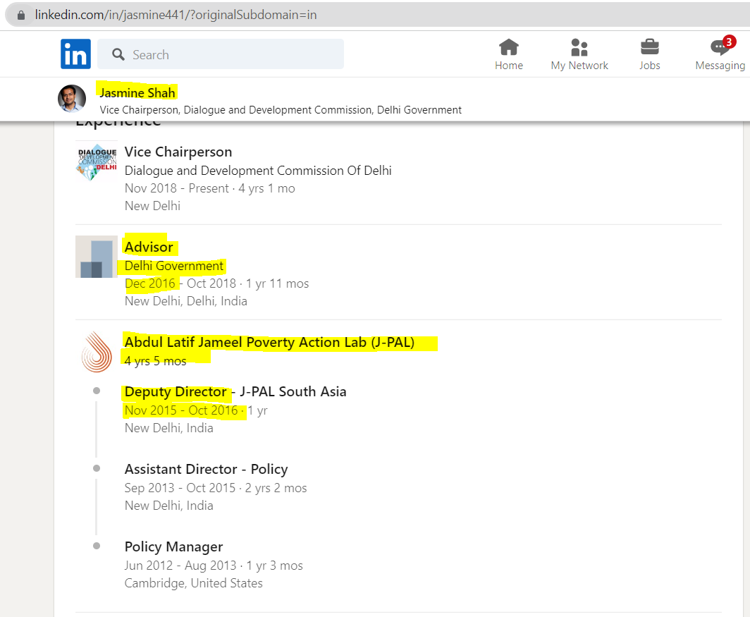 7. In 2016 Jasmine Shah joined AAP and immediately he was appointed as an adviser to DY CM Sisodia. Jasmine Shah was working with Abdul Latif Jameel Poverty Action Lab (J-PAL) before joining AAP. As I said earlier J-PAL is founded by Ford Foundation professor Abhijit Banerjee.