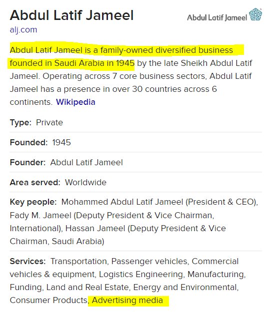 12. Abdul Latif Jameel is a Family owned business house based in Saudi Arabia.