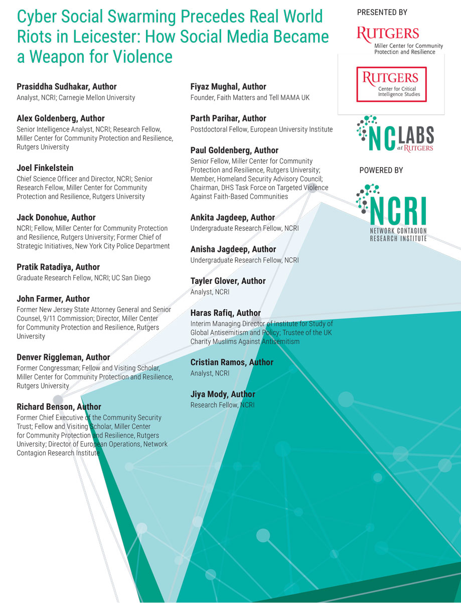 NCRI’s new report “Cyber Social Swarming Precedes Real World Riots in Leicester: How Social Media Became a Weapon for Violence”