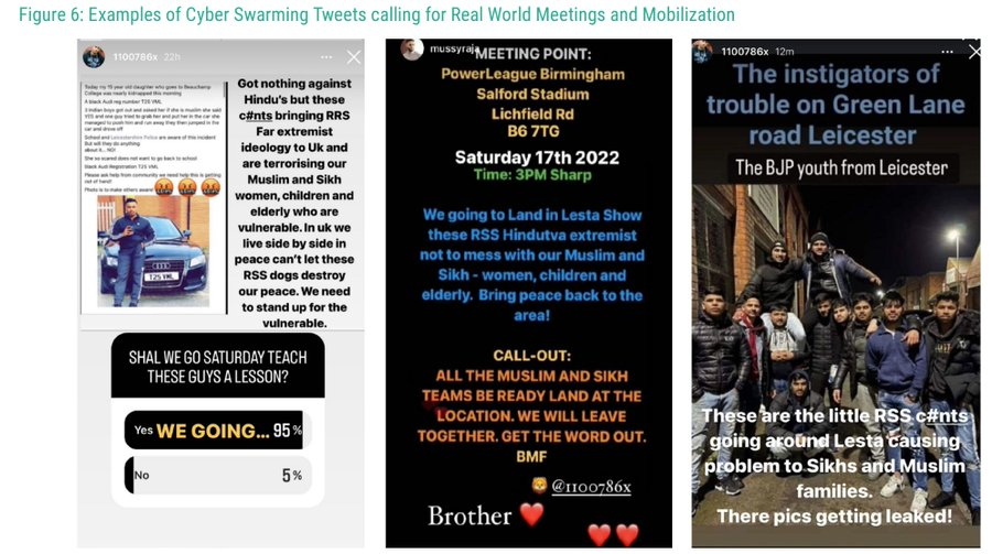 Malicious Narratives around “Hindutva Dominance” Underscored Cyber Swarming activity – recruit followers from the virtual world to mobilize into real world protests and violence in Leicester.