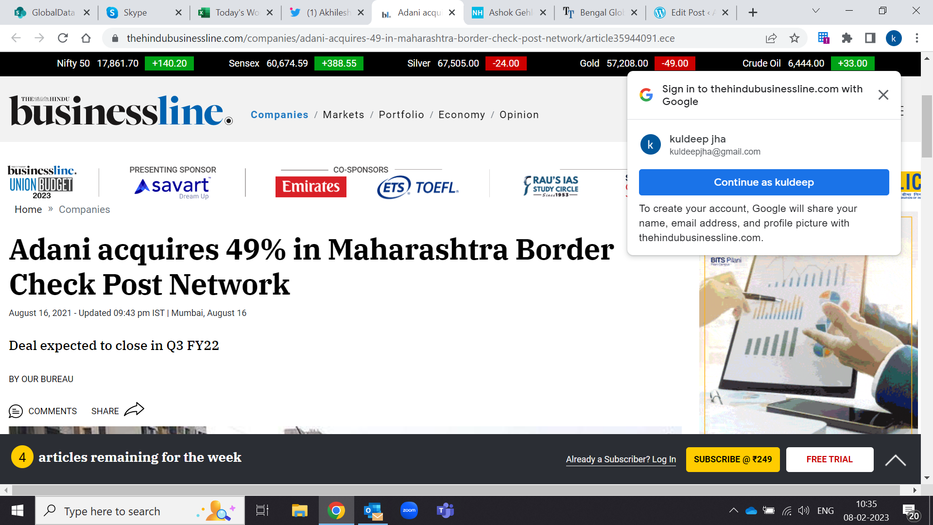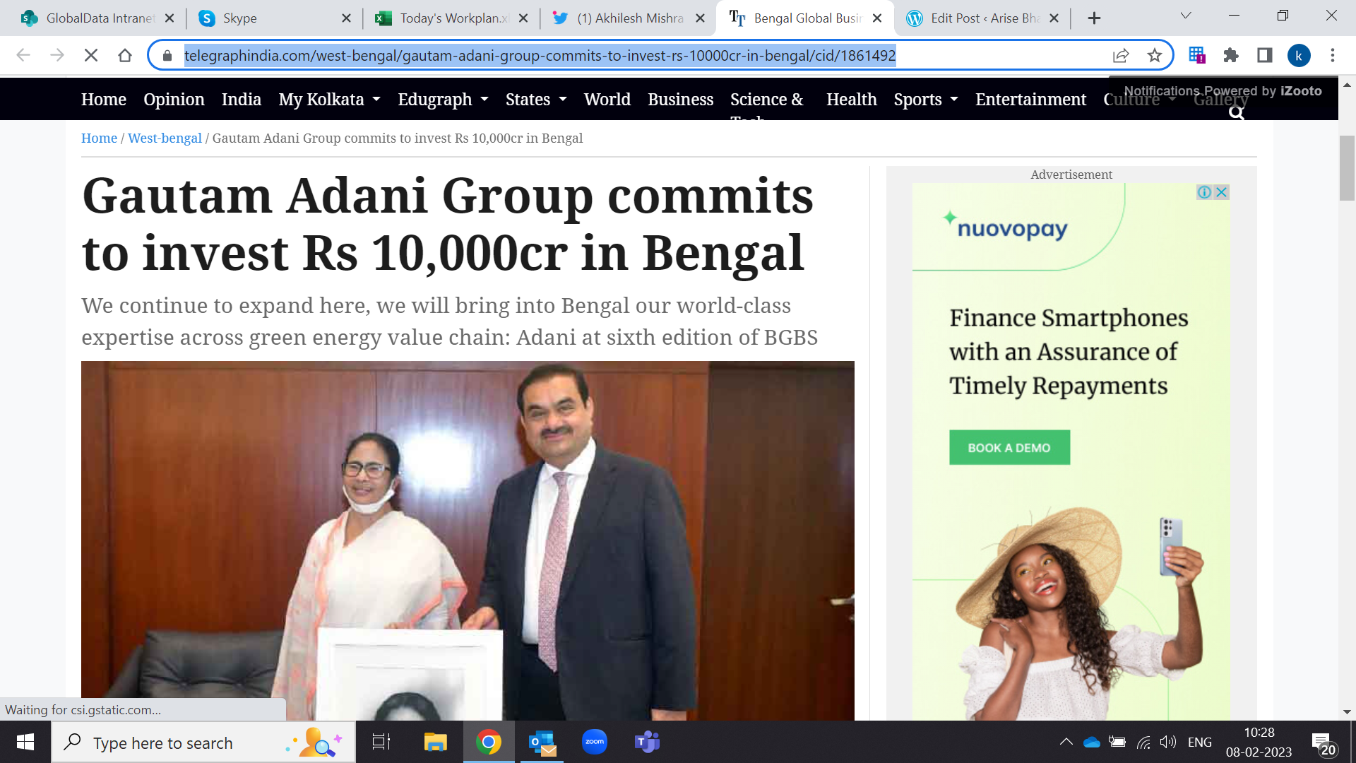 @MamataOfficial met Adani in Dec 2021. Soon enough, Rs. 10,000 Cr investment was announced.