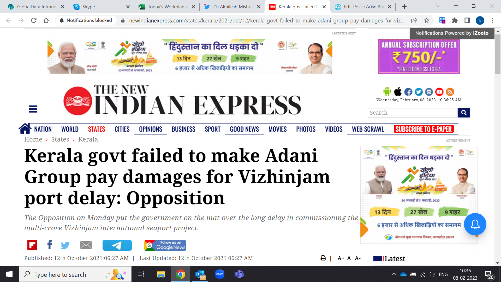 Adani Group in Kerala: Allotted India’s first ever and ambitious international transshipment project in Vizhinjam. The Left front government has even been accused of giving undue favors to Adani group by not imposing penalties for delay.