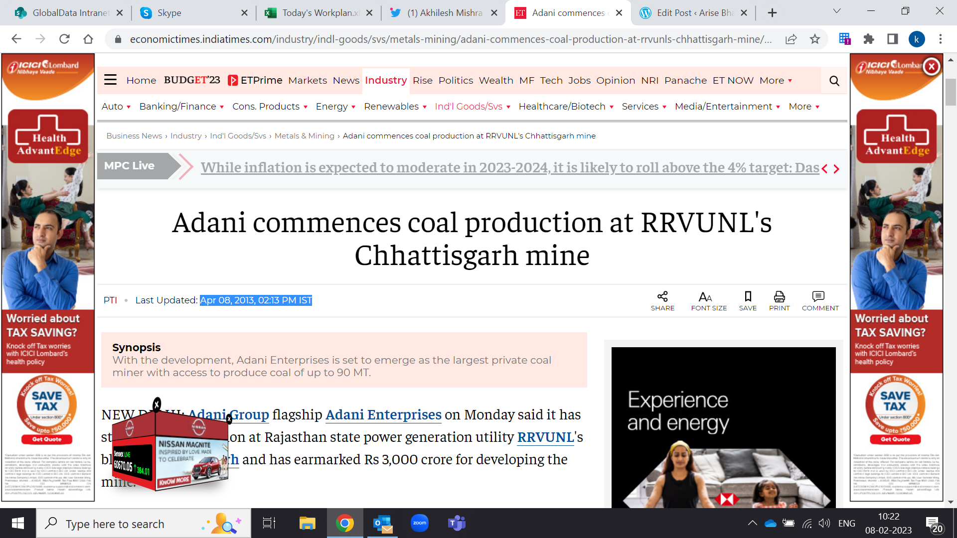 Adani group in Chhattisgarh: Permission for mining in Hasdeo Aranya coalfield despite reservations; Hand over of Gidhamudi and Paturia coal mines in Korba district; Jhigador mine given to Adani in auction in August 2021.