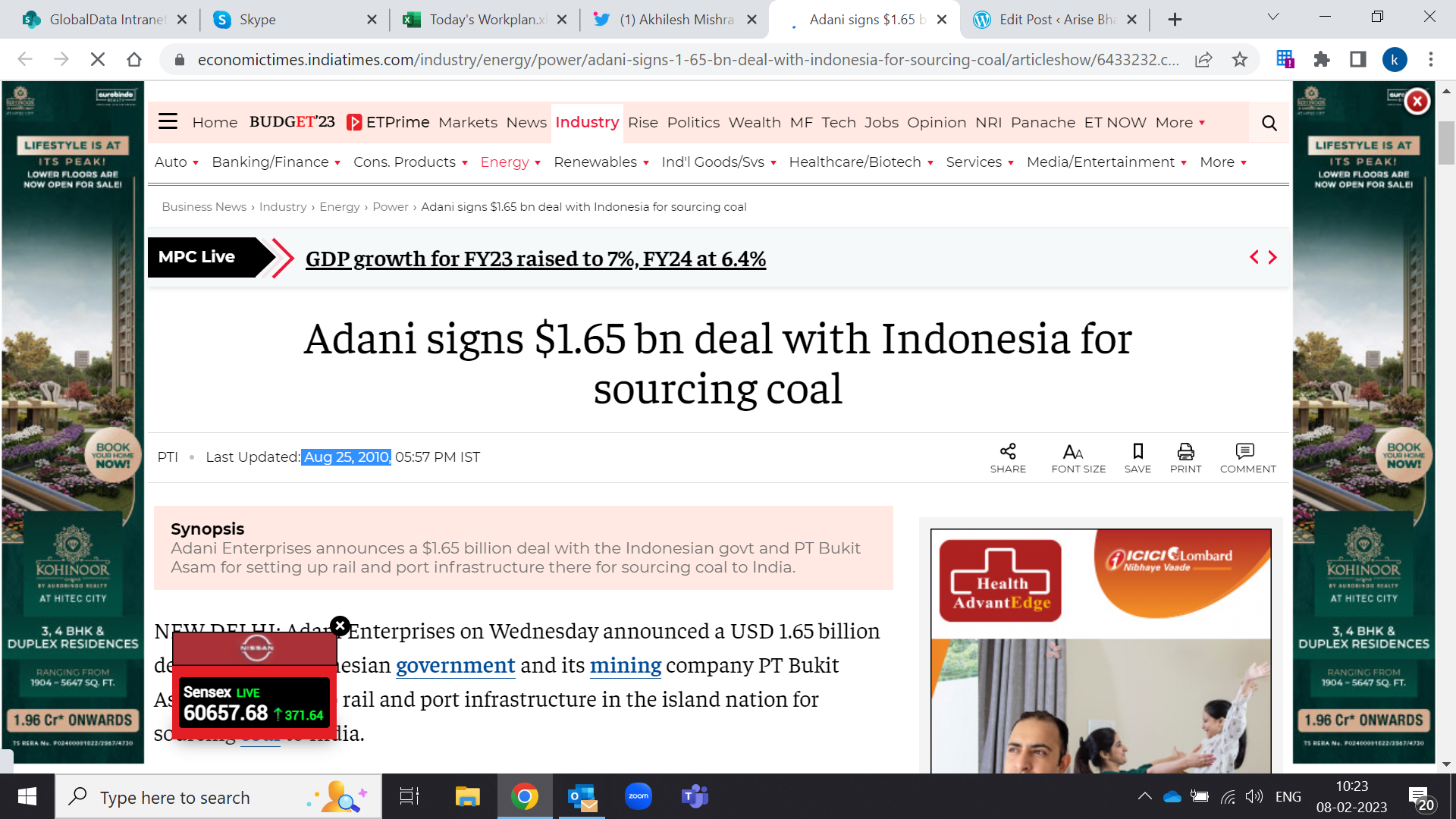 That same year 2010, Adani group signed agreement with Indonesian government mining company PT Bukit for 60% rights over it coal reserves in lieu of Rs. 7,500 Cr investment. Govts of Maharashtra & Odisha also signed MDO agreements with Adani group.