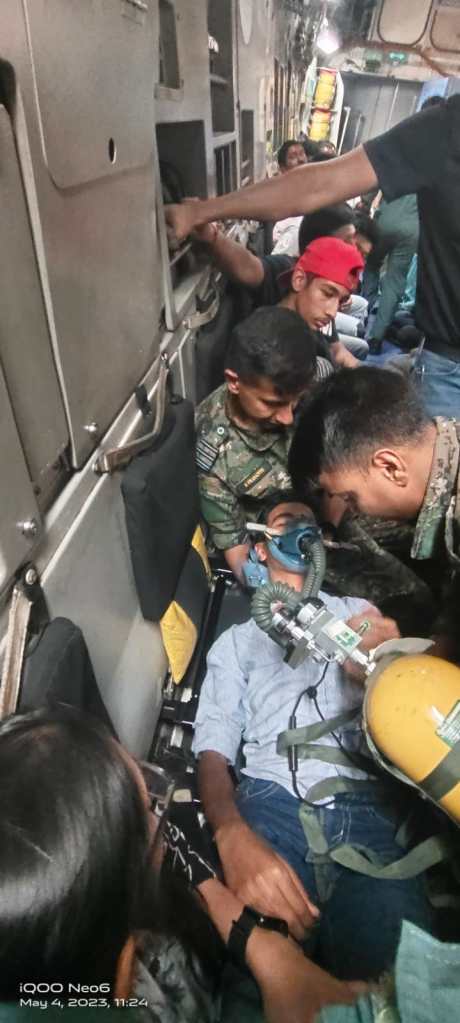 In a daring operation carried out on the night of 27/28 Apr 2023, a C-130J aircraft of the IAF rescued 121 personnel from a small airstrip at Wadi Sayyidna, which is about 40 km North of Khartoum. The passengers included medical cases, including a pregnant lady; besides those who had no means to reach Port Sudan.