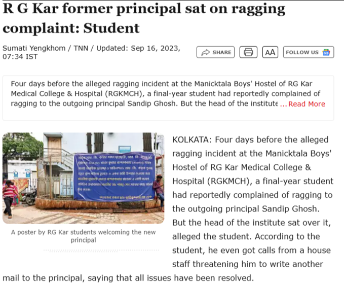 RG Kar Medical College is not responsible for just a single murder. The case is just the tip of the iceberg. THREAD: The complete story behind it.
