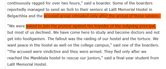 Students who reported ragging were intimidated by seniors and house staff, pressuring them to withdraw complaints.