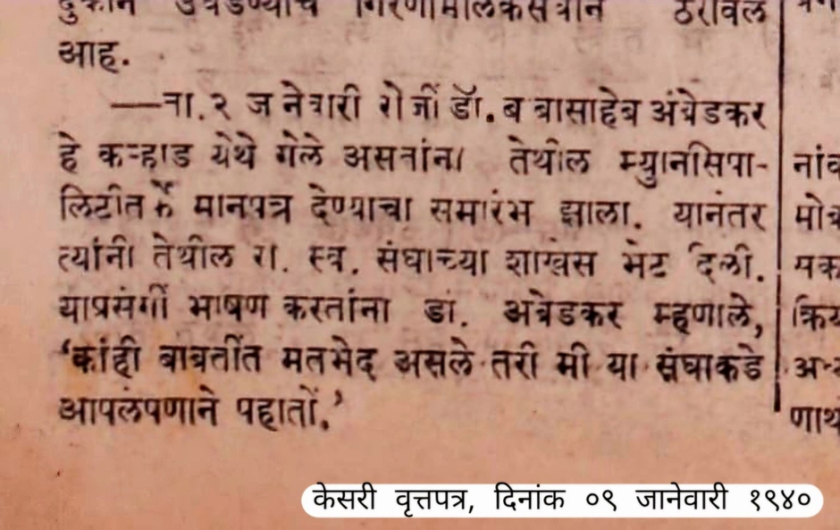 On January 2, 1940, Dr. Ambedkar visited the RSS shakha in Karad, Satara district, where he addressed the Sangh swayamsevaks.
